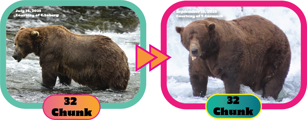 Adult male bears average between 700 and 900 pounds around July, but by the late fall, they get up to about 1,200 pounds. Adult females weigh about a third of that, due “to the energetic costs of raising cubs.” It seems that a woman’s work is never done, even in the Animal Kingdom. The bears typically eat plant and animal food but come September, they feed on a lot of sockeye salmon, which are plentiful in its rivers. Aside from their girth, bears are judged on their adaptability, intelligence and individualism. Their success for survival depends on their knowledge and skills.